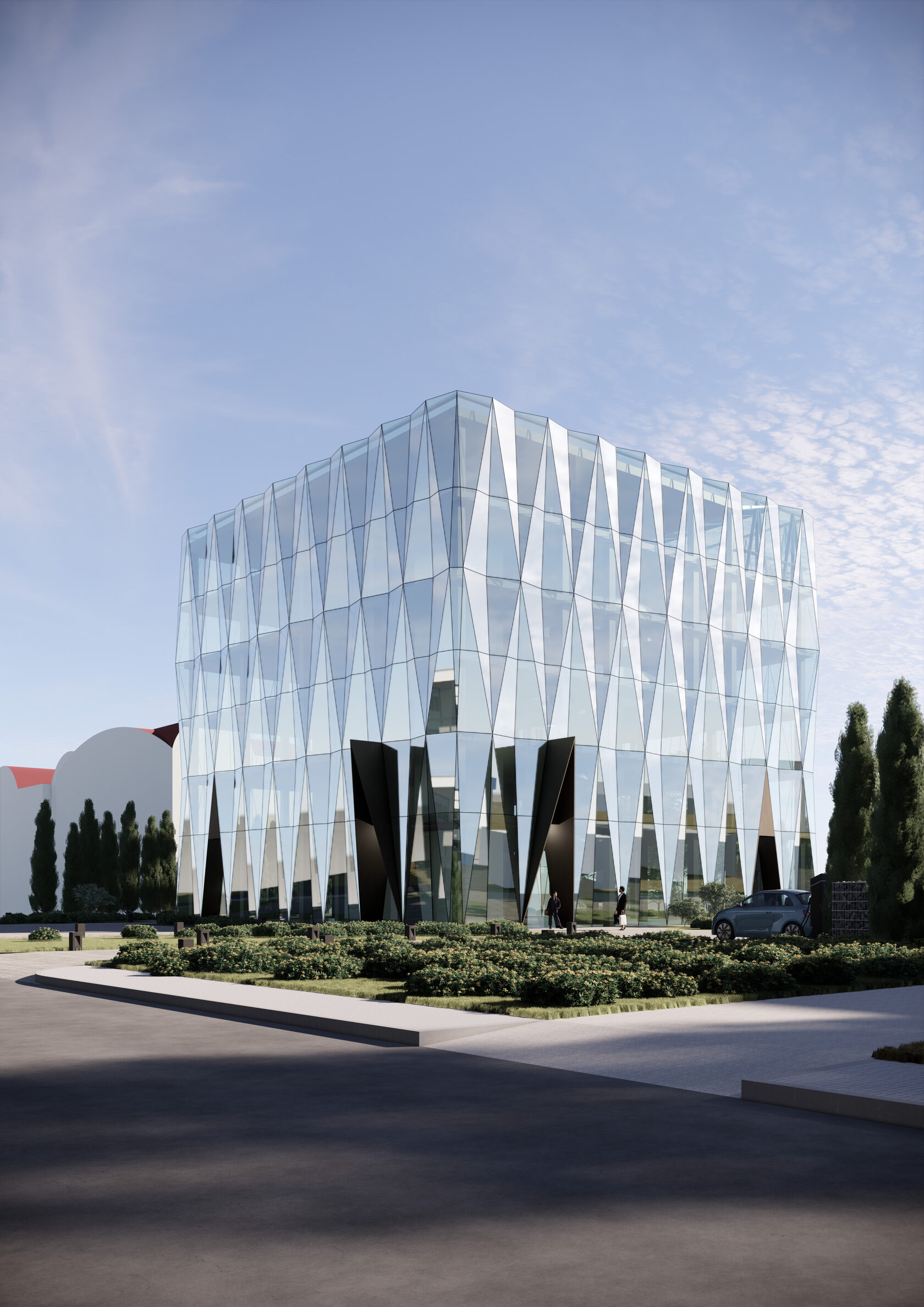 Здание состоит из 6 этажей и представляет собой будущий офис Архитектурно-проектного бюро «Основа». Нашей задачей было создать комфортное пространство, где было бы удобно взаимодействовать не только между отделами, но и внутри команд. На 1 этаже расположены ресепшн, кафетерий и столовая, со 2 по 5 этаж — офисы сотрудников, переговорные комнаты и большой конференц-зал для проведения общих собраний, а на 6 этаже находится зона отдыха с террасой. Фасад выполнен структурным остеклением по всему объему здания, входные группы выполнены в отделке темной бронзы.